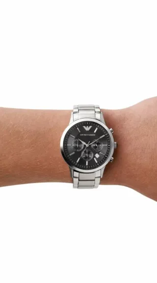 Elegante reloj Emporio Armani Renato con esfera negra y detalles plateados. Un accesorio sofisticado para cualquier ocasión. - Diseño de cronógrafo. - Correa de eslabones metálicos. Hago envíos a toda España, los envíos los hacen el mismo fabricante.