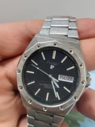 Reloj fonciona perfecto mantiene ahora perfecto cambio fecha día perfecto corona será rosca perfecto estado de reloj está demostrado en las fotos la esfera está en buen estado lo q ay q limpiar es cristal por fuera está rallado y está muy sosyo - Esfera negra. - Correa de metal plateada. - Indicador de día y fecha.
