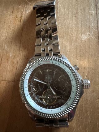 Elegante reloj con detalles en negro y plateado. - Diseño sofisticado. - Correa metálica. - Esfera con múltiples indicadores. movimiento mecánico se activa al caminar falta un botón regalo de Nueva York