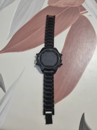 Elegante reloj con detalles dorados y esfera negra. - Diseño moderno y sofisticado. - Correa metálica. - Esfera con detalles visibles