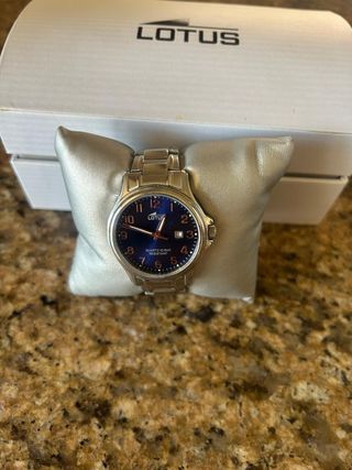 reloj lotus mujer con correa metalica y esfera azul. con caja original. muy poco usado y en perfectas condiciones.