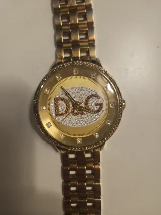 Elegante reloj de la marca Dolce & Gabbana con un acabado dorado. CON PRECIO NEGOCIABLE - Diseño con esfera adornada con cristales. - Correa metálica a juego.