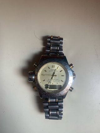 Reloj Casio vintage con funciones de altímetro y profundímetro. -NO tiene pila - Bisel con indicaciones de dirección. - Correa de metal. - Esfera analógica y digital.