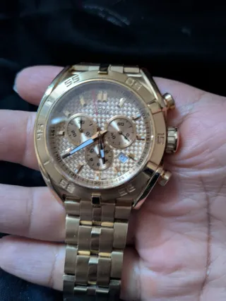 Reloj Dorado Unisex Calendario Gronograp Cristal