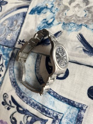 Reloj Hamilton Khaki Field en excelente estado. Modelo clásico de inspiración militar. Caja de acero inoxidable y correa de metal original, muy cómoda y resistente. Cristal de zafiro antirrayas y diseño atemporal que combina perfectamente con cualquier estilo, tanto casual como elegante. Ideal para quienes buscan calidad, fiabilidad y estilo en un solo reloj. Precio Negociable.