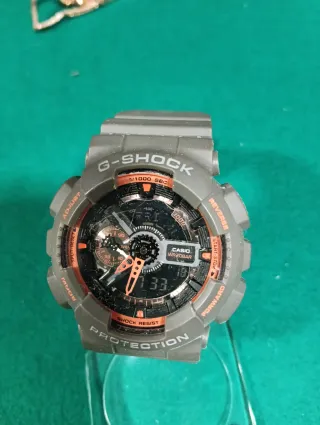 Reloj Casio G-Shock con un diseño deportivo y resistente. - Esfera con detalles en naranja. - Correa de resina gris. - Protección contra golpes.