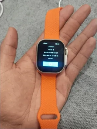 Reloj inteligente con un diseño moderno y una correa llamativa. - Correa de silicona en color naranja. - Pantalla nítida y brillante. Va perfecto