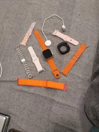 Reloj inteligente con un diseño moderno y elegante. - Correa ajustable. - Pantalla táctil. - Monitor de actividad física. -2 no me acuerdo de la aplicación para sincronizar con el reloj Están en buen estado y funcionando perfectamente -El naranja ( Amazfit) hoy le ha dado por no encender lo borraré del anuncio