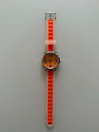 Reloj con correa de silicona en llamativo color naranja y esfera negra. - Correa de silicona. - Esfera negra. - Cierre de hebilla.