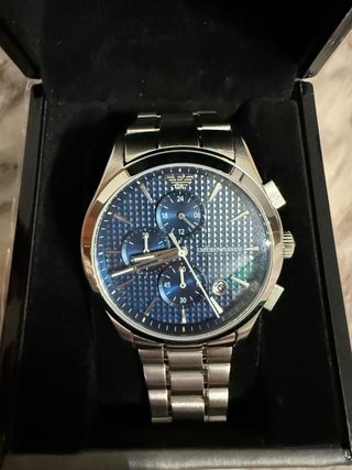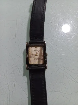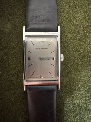 Reloj Emporio Armani original, en buen estado y funcionando correctamente. Diseño rectangular clásico con esfera plateada minimalista y correa de piel original. Detalles: • Movimiento de cuarzo • Caja de acero • Resistente al agua 50 m • Medidas elegantes, ideal para vestir • Funciona perfectamente Presenta marcas normales de uso en caja y cristal (ver fotos), propias del paso del tiempo, pero nada que afecte a su funcionamiento. Un reloj sobrio y elegante, perfecto para uso diario o para colección.