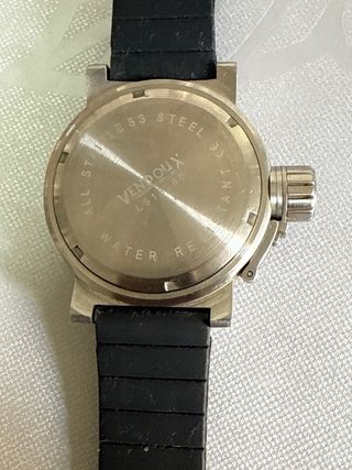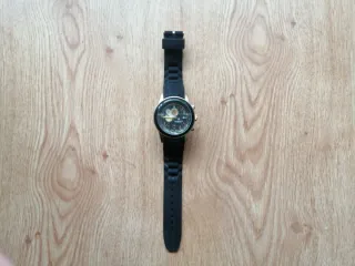 Reloj deportivo de la marca Marea con esfera negra y números grandes de fácil lectura. Estética tipo "Diver" con correa de silicona negra muy cómoda. Pila nueva, funcionando perfectamente.