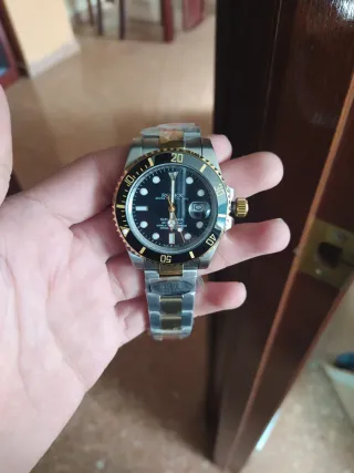 Elegante reloj automático con detalles en dorado y esfera negra. De muy buena calidad. Más información escríbeme - Diseño clásico y sofisticado. - Correa de eslabones combinada en acero y dorado.
