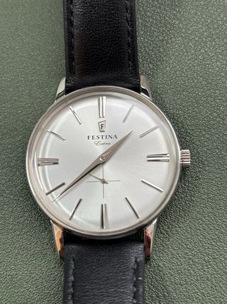 Reloj Festina Extra con caja plateada y correa de piel negra. Se incluye la caja original y la documentación. sin un rasguño - Esfera plateada. - Correa de piel negra. - Cierre de hebilla. - Modelo F20248 - Unisex. 36mm - Sin un rasguño - Pila recien cambiada - Se habrá usado 2 o 3 veces, por eso lo vendo - Ideal para regalar. - Incluye estuche y funda de estuche.