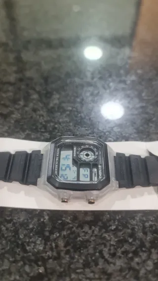 Reloj digital con diseño moderno y multifuncional. - Correa de material sintético. - Caja de plástico resistente. - Resistente al agua WR30M.