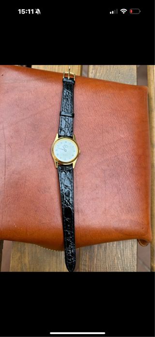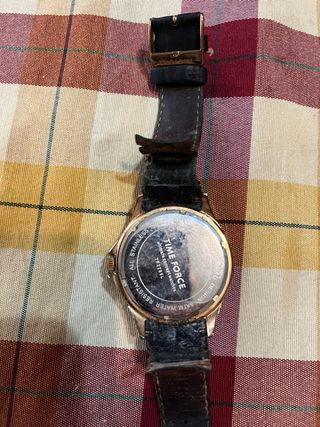 Elegante reloj Time Force para mujer con un diseño sofisticado.La correa esta podrida,habria que sustituir. - Correa de piel negra. - Esfera con detalles dorados y números romanos. - Bisel adornado.