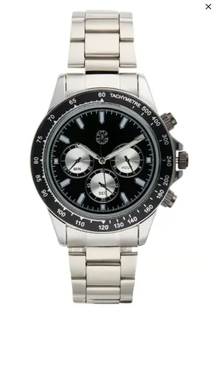 ⌚ Reloj cronógrafo de cuarzo – elegante y deportivo Reloj de pulsera con diseño moderno en tonos plateado y negro, ideal tanto para el día a día como para ocasiones especiales. Su estética deportiva con subesferas tipo cronógrafo y bisel con taquímetro lo convierten en un complemento muy versátil. Características: ✔ Movimiento de cuarzo ✔ Funciones: cronógrafo y taquímetro ✔ Esfera negra con detalles plateados ✔ Cristal mineral resistente ✔ Caja y correa de aleación ✔ Correa de eslabones metálicos ✔ Cierre de hebilla desplegable ✔ Resistencia al agua: 1 ATM / 10 m ✔ Diámetro de la caja: 41 mm ✔ Longitud de la correa: 200 mm