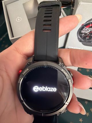 No funciona el pulso oxigeno en sangre,etc.. Por eso el precio. Reloj inteligente Zeblaze Stratos 4 en color negro. Diseñado para un estilo de vida activo. - Pantalla con QR para descargar la aplicación. - Correa de silicona. - Bisel deportivo.