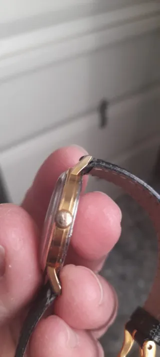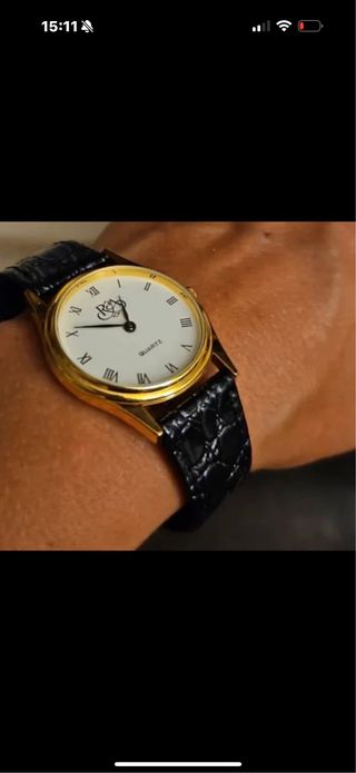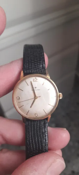 Elegante reloj Hamilton mecánico con caja dorada y correa de piel negra. Solo acepto bizum y yo envío certificado - Esfera clara con marcadores. - Diseño clásico y atemporal.