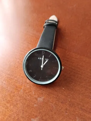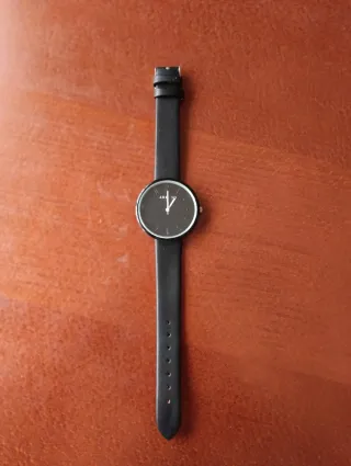 Elegante reloj de pulsera con correa. - Diseño moderno y minimalista. - Esfera negra. - Correa negra. - No lleva pila