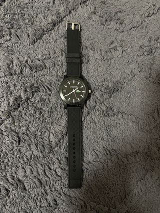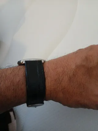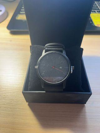 Reloj de pulsera para hombre con un diseño moderno y elegante. - Correa de cuero negra. - Esfera con detalles plateados. - Resistente al agua 30M. El reloj está en buen estado. Poco usado. Lo compré en Wallopop hace seis meses. Lo vendo porque quiero comprar de otra marca. Ver la foto para ver el estado.