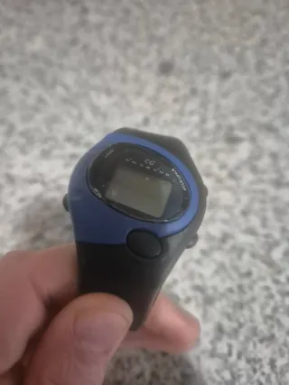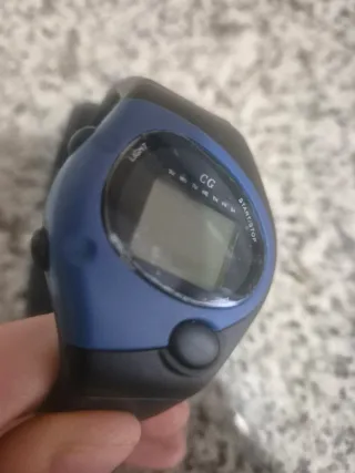 Reloj deportivo con diseño moderno en tonos negro y azul. - Correa de material resistente. - Botones de control en contraste.