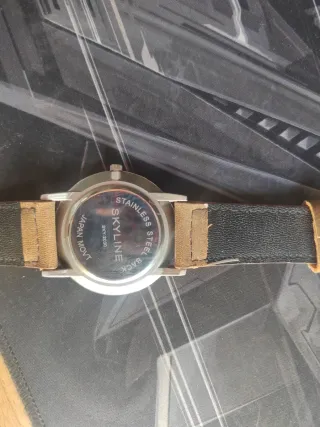 Reloj de pulsera con esfera Naranja y negro. Presentado en su caja original. Se le cambia de color el cristal según le de el sol en tonos anaranjados las agujas son azules flúor tiene cronómetro el reloj es precioso. - Diseño moderno y llamativo. - Correa negra. - Resistente al agua 10 BAR.