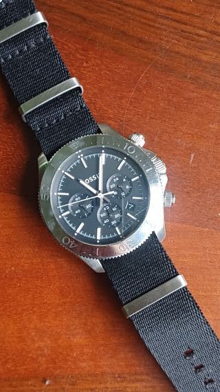 Elegante reloj de la marca Boss. - Caja negra. - Correa azul. - el reloj esta como nuevo. - se puedo llevar a joyeria para verificar todo.