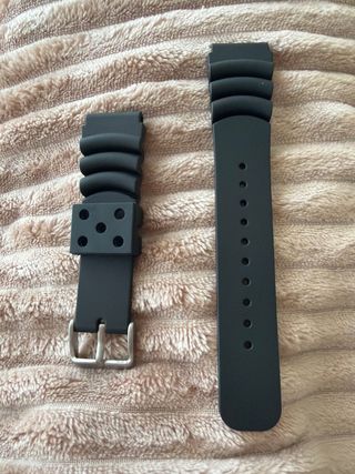 Vendo armis / correa de reloj con logotipos de la Ola de kanagawa y hebilla de acero Seiko. modelo de 22mm de ancho. - Material de goma duradero. ideal para hacer alguna renovacion, modificación o Seiko Mod de cualquier modelo de éstas medidas. se puede ver y entregar en mano en Elche, también hago envíos por wallapop. más piezas y articulos relacionados en mi perfil! Seiko, citizen, omega, festina, certina, G-Shock, casio, Rolex, lotus, viceroy