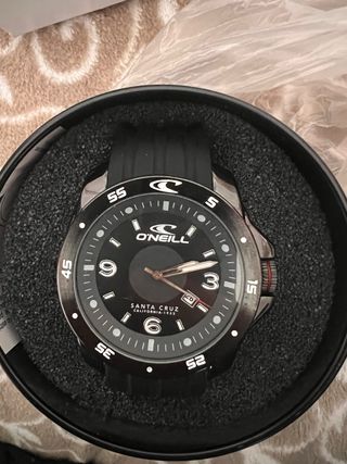 Reloj de pulsera con diseño deportivo y moderno. - Correa de caucho negra. - Esfera negra con detalles plateados. - Bisel con marcadores de tiempo.