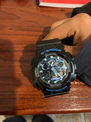 Este reloj Casio G-SHOCK es perfecto para el uso diario y actividades deportivas. Su diseño combina el color negro con detalles en azul. - Correa de resina resistente. - Esfera con múltiples indicadores. - Cierre de hebilla.