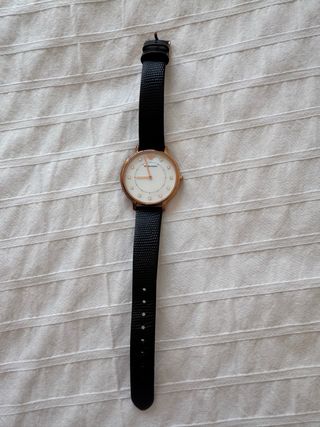 Elegante reloj de la marca Marc Jacobs con un diseño sofisticado. - Esfera de color blanco. - Correa de cuero negra. - Detalles dorados en la caja Funcionabilidad perfecta Excelente estado Envío protegido Envío inmediato