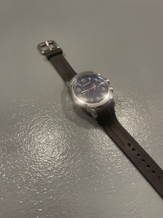 Reloj Emporio Armani con un diseño inspirado en la aviación. Su esfera oscura y detalles plateados le dan un toque elegante. ***Precio negociable*** - Hybrid Smartwatch - Correa de cuero negra. - Caja de acero inoxidable. - Esfera analógica con subesfera.