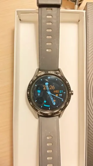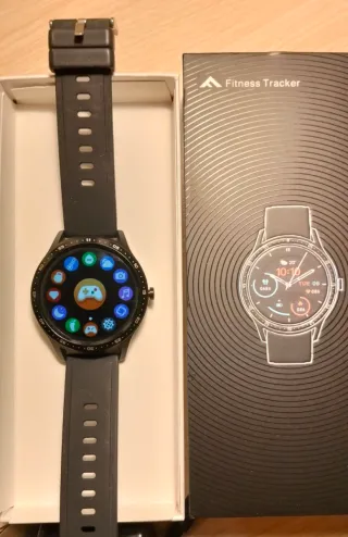Reloj inteligente con diseño moderno y correa cómoda. - Pantalla a color con múltiples iconos de aplicaciones. - Correa de silicona negra. - Caja del reloj en color negro. Incluye su cable de carga. Se ha usado 2 veces.