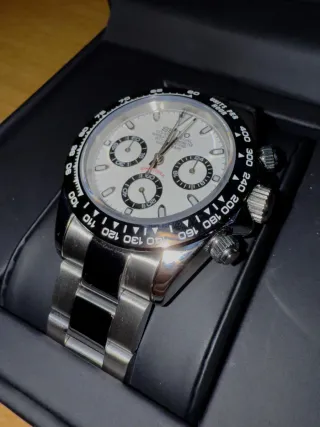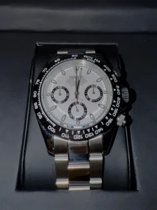 ⏱️ Reloj Seiko Mod Daytona Panda Blanco✨ 🔹 Movimiento mecaquartz VK63 🔹 Esfera negra con detalles plateados, elegante y sofisticada 🔹 Correa de acero inoxidable, duradera y cómoda 🔹 Función de cronógrafo, perfecto para medir el tiempo con precisión 🔹Si quieres la caja de las imágenes +5€, sino vendrá la "DEFAULT BOX" (ultima imagen)
