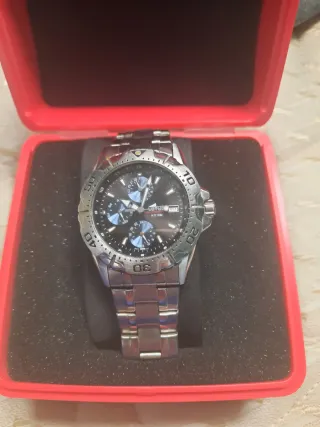 Reloj de hombre Festina con diseño multifunción, esta en perfecto estado , con la espfera impoluta sin ni un solo rallon, solo tiene 1 año, y se a usado poco, demostrable en el tiquet, aun dispone de 2 años de garantía. - Esfera negra con detalles plateados. - Correa de acero inoxidable. - Resistente al agua, aún que nunca se a sumergido debajo del agua ni se a mojado, mas que un pañito para mantenerlo limpio.