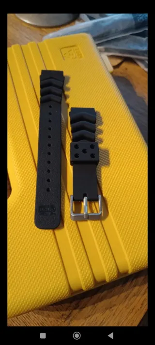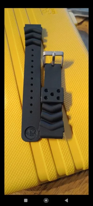Correa de repuesto para relojes Seiko de 22mm. - Hebilla de acero inoxidable. - Diseño con muescas para un ajuste cómodo. - Logo grabado en la correa, con la ola Okinawa de seiko