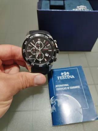 Reloj Festina Cronógrafo Negro y Plateado. Nuevo.
