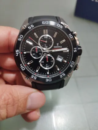 Elegante reloj Festina con diseño deportivo y moderno. Ideal para uso diario o ocasiones especiales. Modelo F20330. original - Caja de acero inoxidable. - Correa de caucho negra. - Esfera negra con detalles plateados. - Función cronógrafo. - Resistente al agua. Es un regalo que no voy a usar, muy bonito pero vendo por tener demasiados relojes. Nunca puesto. Aporto precio actual. Negociable. Regalo perfecto para Reyes.