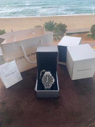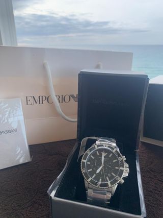 Elegante reloj Emporio Armani para hombre. - Diseño moderno con detalles en plateado. - Esfera negra. - Correa de eslabones.