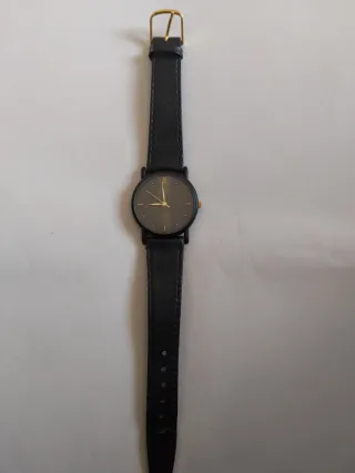 Reloj de pulsera con diseño moderno y elegante. - Correa de silicona negra. - Esfera redonda con detalles dorados. - Cierre de hebilla.