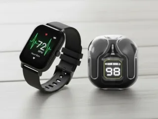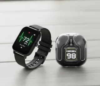 Este pack incluye un reloj inteligente y unos auriculares. - Reloj con correa negra. - Auriculares negros.