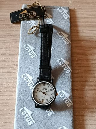 Elegante reloj Lotus para mujer, un accesorio vintage que añade un toque clásico a tu estilo. Se encuentra en perfecto estado. - Mujer de tamaño pequeño - Nuevo con etiqueta - Correa negra. - Esfera blanca - El reloj está tal cual se ve en las fotos.
