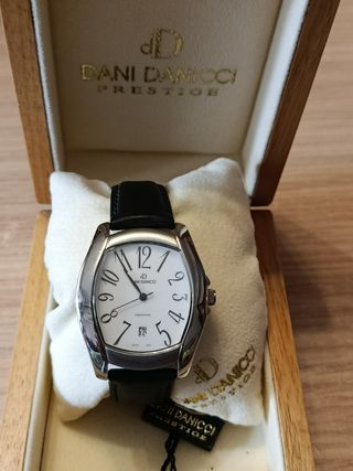 Elegante reloj de la marca Dani Danicci, presentado en su caja original. - Diseño moderno y sofisticado. - Correa negra. - Esfera blanca con números arábigos. - Nuevo con etiqueta y estuche original - El reloj está tal cual se ve en las fotos