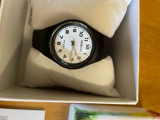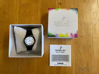 Reloj Nowley con correa de silicona negra y esfera blanca. Con precinto a estrenar. Garantía de 3 años (fecha de compra 14/12/2025). Resistente 10 ATM. Diseño moderno y ligero. Con cierre de hebilla para un ajuste seguro.
