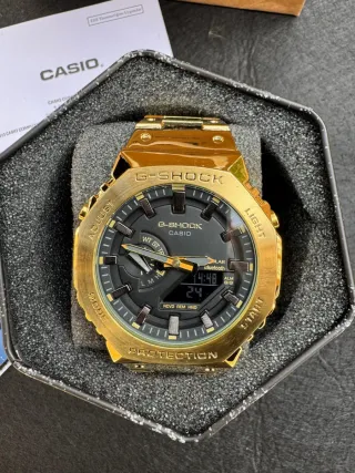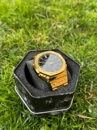 Reloj G-Shock con un diseño llamativo en dorado y negro. Envío 24 Horas 💨 💼 -Correa y caja en acabado dorado. -Esfera negra con detalles en dorado. -Totalmente nuevo -Incluye caja y todo lo que se ve en las fotos. Perfecto para regalar 🎁