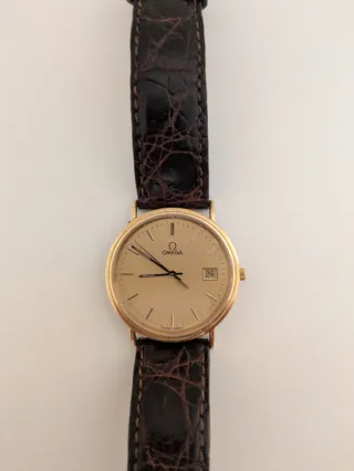 Reloj Omega del año 2001. Signos de desgaste en su correa original. El reloj funciona perfectamente. - Referencia: 1530 - Año de fabricación: 2001 - Correa: Piel - Diámetro: 33mm - Caja de oro de 18 kilates