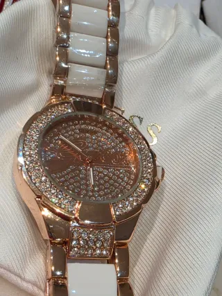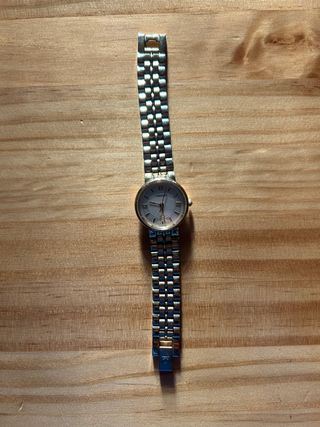 Elegante reloj de pulsera con una combinación de colores oro y plata. Su diseño clásico lo hace perfecto para cualquier ocasión. - Correa de eslabones metálicos. - Esfera clara con marcadores de hora.
