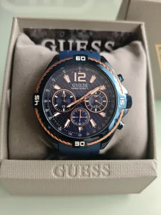 Reloj Guess Surge Cronógrafo Hombre W1168G4 con movimiento de cuarzo, caja de acero 45 mm, esfera azul y correa de silicona azul con cierre de hebilla. Caja de acero 45 mm azul maquinaria de cuarzo japonesa con cronógrafo correa de silicona azul con cierre de hebilla tapa de fonda a rosca corona a rosca agujas color oro rosa y luminiscentes esfera azul Cronógrafo cristal hardlex resistente al agua 100 m Guess Surge Cronógrafo Hombre W1168G4