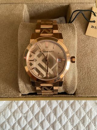 ⌚ Reloj Burberry “The City” - Original Vendo reloj Burberry The City, recibido como regalo y no es de mi estilo, por lo que está en estado perfecto. ✨ Detalles • Modelo: BU9146 • Diámetro de la caja: 34 mm • Ancho de la correa: 16 mm • Longitud: 5,91 pulgadas • Color: Oro rosa • Diseño elegante y atemporal ✅ Verificación oficial de Vinted disponible 📦 Envío rápido 💬 Para cualquier pregunta, escríbeme sin compromiso