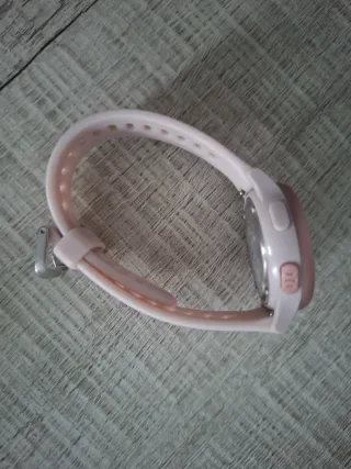 Reloj smartwatch con correa rosa y detalles dorados. - Diseño moderno y juvenil. - Pantalla digital. - Correa ajustable.